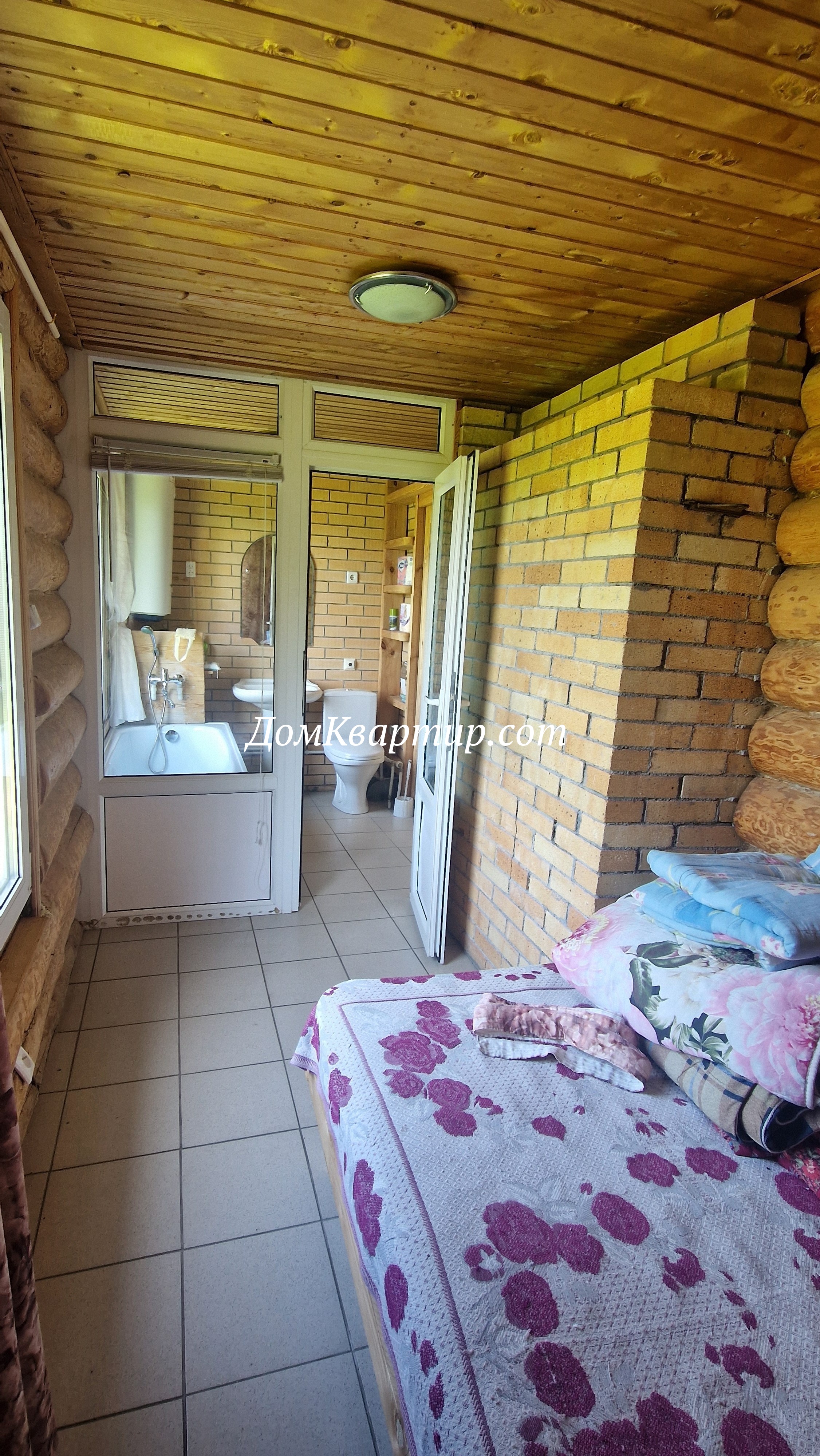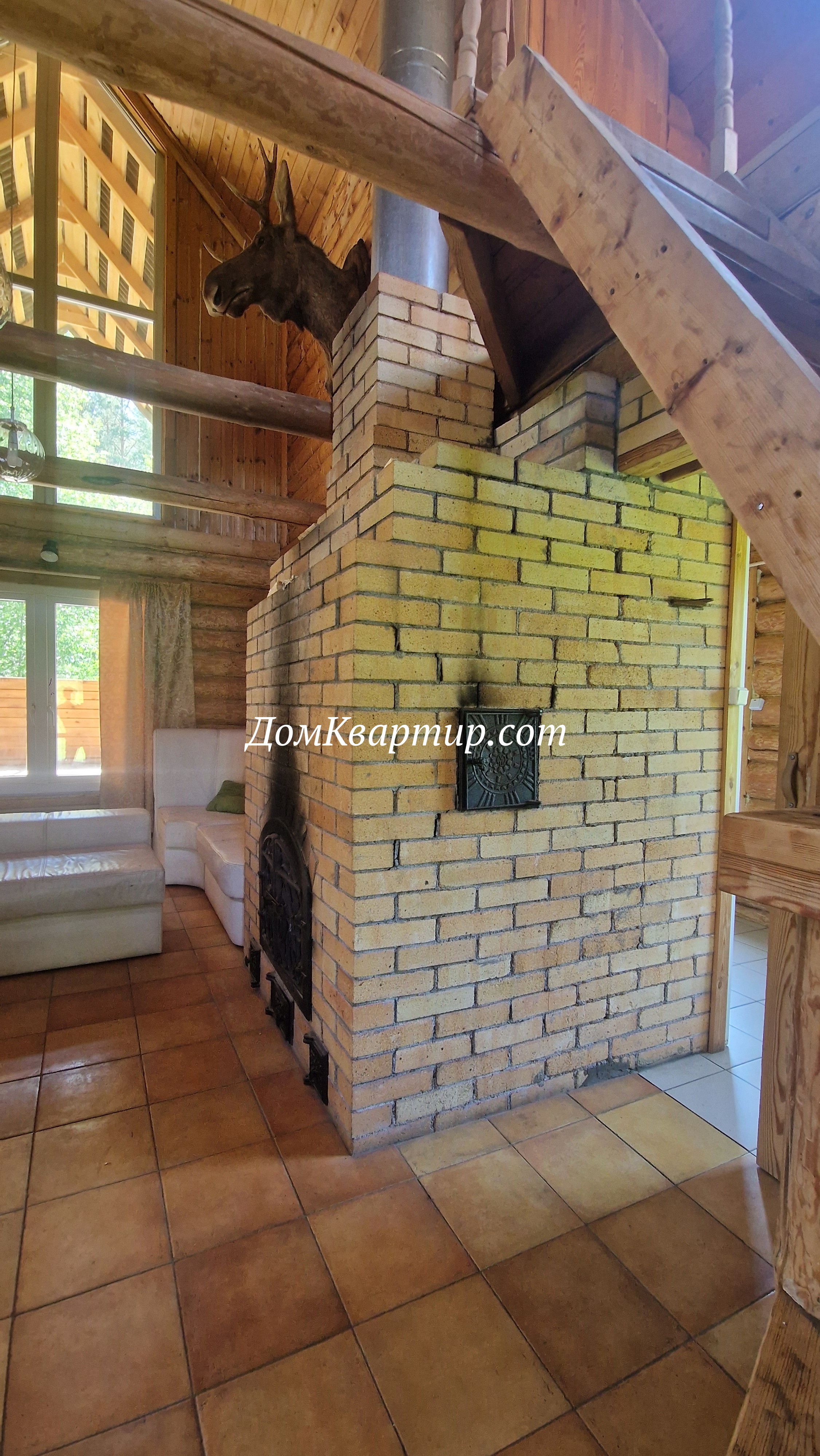 Дом построен с заботой о качестве и комфорте: бревна обработаны специальной пропиткой, фундамент обшит и окрашен, кровля покрыта надёжным ондулином, окна — современные стеклопакеты, полы в доме — плитка. Отопление обеспечивается большой печью с духовкой, а также тёплым полом и конвекторами, что создаёт тёплую и уютную атмосферу в любое время года.